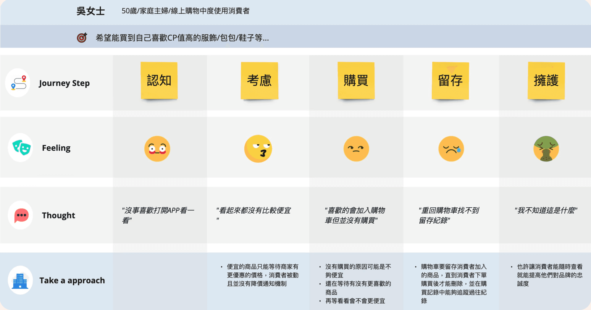 分別在考慮、購買、及留存的部分需要即時作修正。